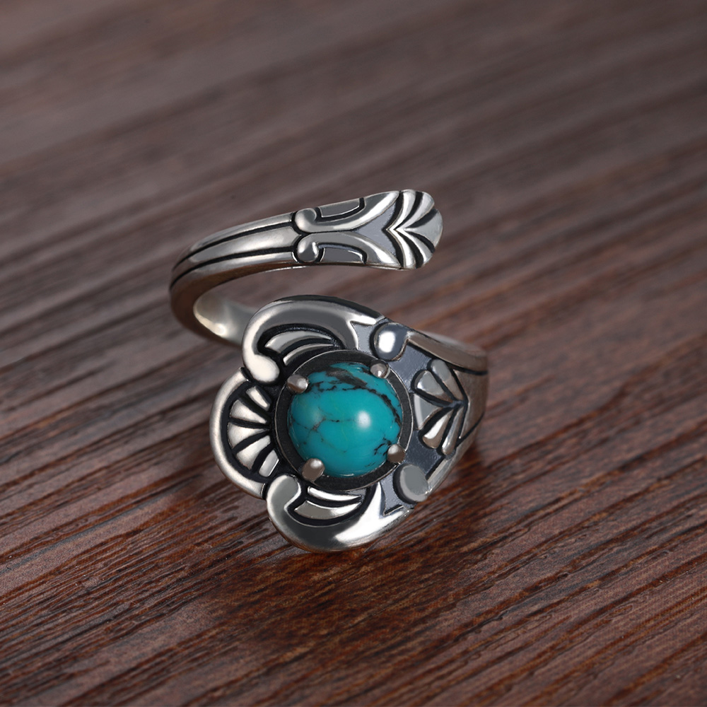 Beautiful people all over the world still love spoon rings much. We have retained the classic style of spoon rings and selected turquoise, their combination gives the ring an old charm, beautiful fashion and a good moral. You can also engrave the inside of the ring with words you want to say or memorial words for yourself or your loved ones.