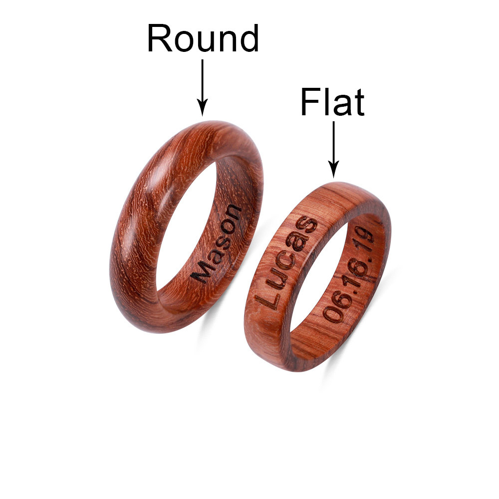 Burma padauk ring is a kind of fabulous natural jewelry with minimalist style. Lightweight and comfortable to wear, it is completely natural and environmentally friendly jewelry that is becoming more and more popular as they represent a more natural approach to life. Also, wooden jewelry is a great choice for a 5th-anniversary gift in the traditional way. Even better, you can engrave names and text on the inside and outside of wood rings. Time to make one-of-a-kind rings for your special ones to tell them how much you care about them!