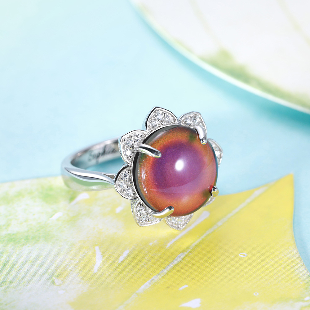 This beautiful sunflower mood ring not only enchants the eye of the wearer but to bring happiness in the wearer's heart. Because of its likeness to the sun, the sunflower symbolizes optimism and warmth adoration. Also, moonstone reveals one's inner emotions through the changing temperature and helps you know her feeling better. Customize the ring with words you want to say to your special people. This is the unique gift that she will cherish forever!