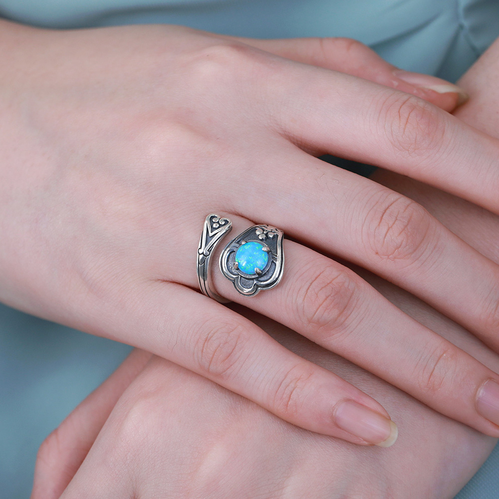 What makes this classic spoon ring special is that we use opal stone as the ring of the gemstone in the middle, surrounded by carved patterns, we offer up to 10 colors of opal stone for you to choose, each with a hint of light, all of make this ring look unique and elegant. You can also engrave the words you want to say or commemorative words in the ring to give yourself or your loved one. Bring this wonderful gift home!